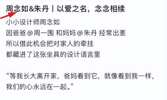 在接受采访时,周念如还透露说沙发中的其中一个爱心就代表她自己的心。而从沙发的整体设计来看,整张沙发似乎是由四个爱心巧妙组合而成,这应该象征着朱丹、周一围和他们一家四口的幸福与团圆。