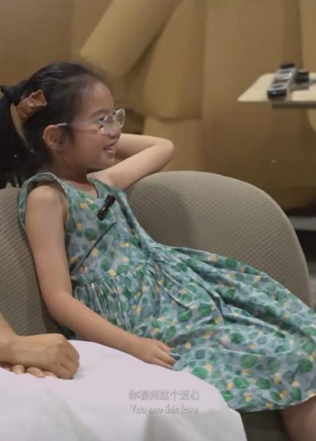 另一张照片中,小小丹仰躺在沙发里,就像一条灵动的小美人鱼。她用恋恋不舍的眼神看着妈妈,仿佛生怕一眨眼妈妈就会消失不见。