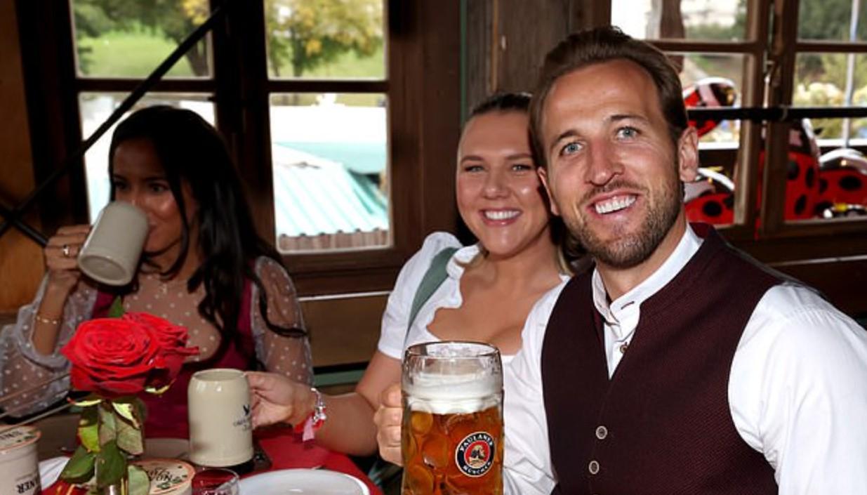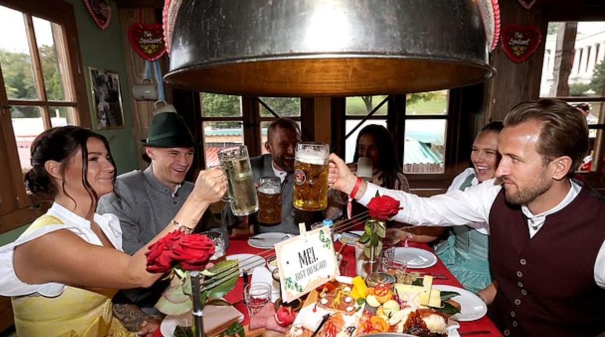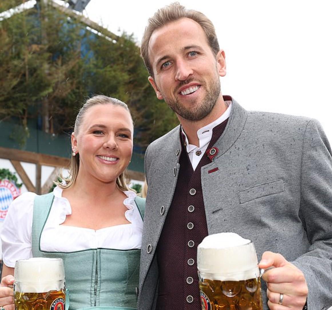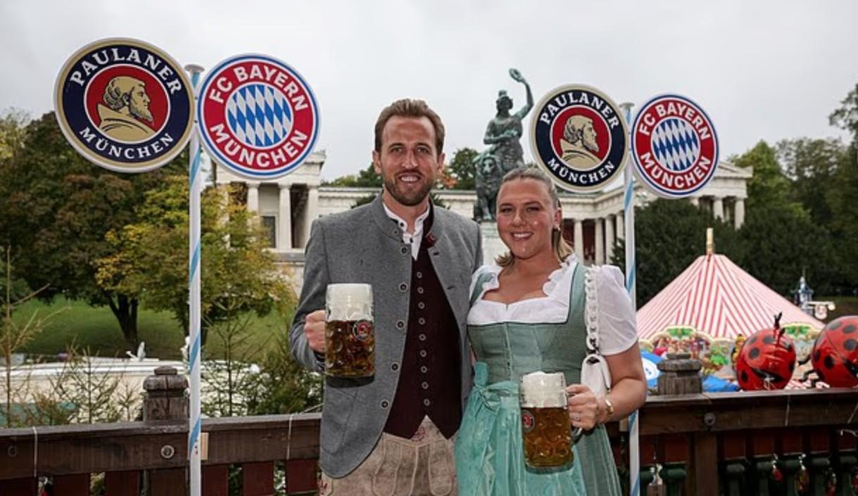 作为英格兰国家队队长,凯恩已进入在拜仁慕尼黑的第三个赛季。此次活动中,他身着经典巴伐利亚皮短裤(Lederhosen),手持巨型啤酒杯,与妻子凯特共同沉浸在节日氛围中。凯特则以传统连衣裙搭配发饰,两人携手入场,引发现场球迷热烈欢呼。