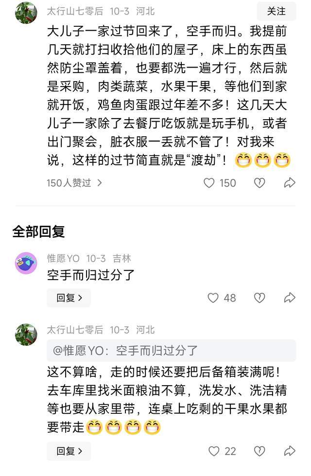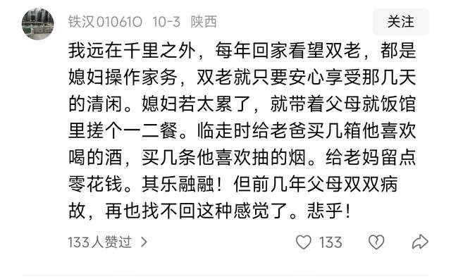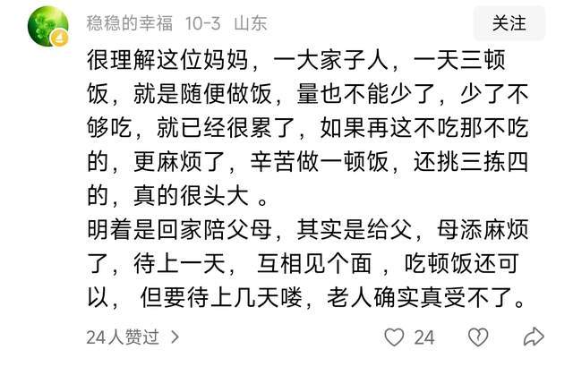 子女们带着‘孝心’回家,却把劳动‘外包’给了父母;嘴上说着‘随便吃点’,身体却诚实地挑剔着咸淡甜辣。这种‘只消费不付出’的团圆模式,让老人感到身心俱疲。