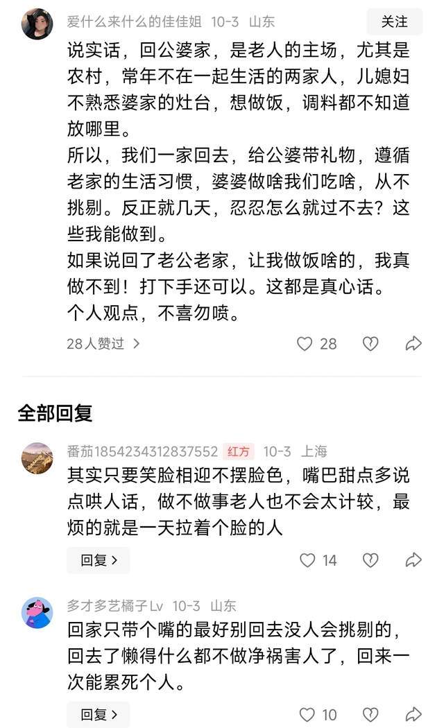 一位博主母亲在网络上曝光了自己拒绝儿子携家带口回家过节的决定,迅速引发网友热议。她直言:‘你们该干嘛干嘛去,不要回来,有时间就出去转转。你们回来,我还得伺候一大家子,做饭做不对了,这个不高兴,那个不乐意的!’