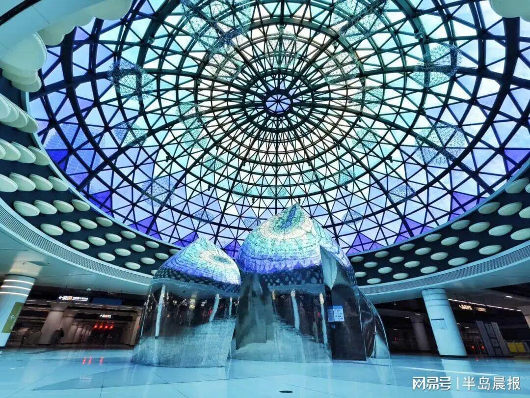 3、7号线交会的武汉商务区站,出入口开通数量已超10个。站内“梦幻星空”主题设计使其获封“亚洲最美地铁站”。