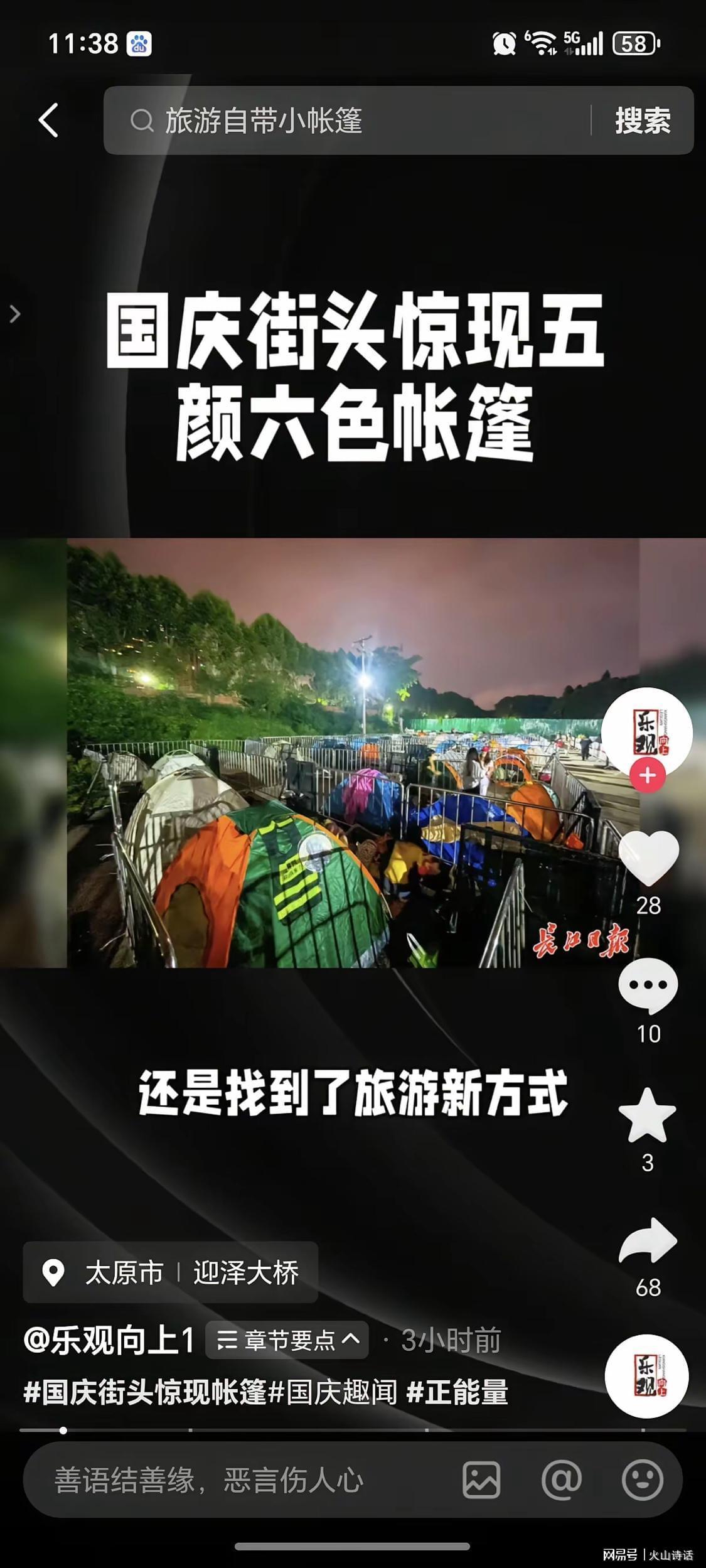 面对如此现状,年轻人展现出了他们的智慧与态度,整出了十一黄金周的新玩法——帐篷露营潮!各地在国庆期间陆续出现了帐篷文化,大家纷纷选择在露天户外扎营,而不再入住宾馆。