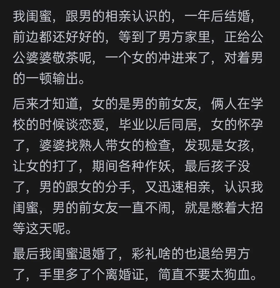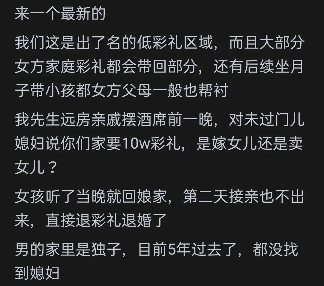 还有一位网友分享了自己哥哥的经历。他哥哥和我爸都是体制内,我妈合同制。哥哥女朋友是体制内,父母无业,家中还有一个残疾妹妹。女方家要求孩子跟女方姓,说因为她家没有男丁,怕绝后了。彩礼不带回小家,婚前财产还要加女方名字。甚至要求我哥和我爸的钱都要她花,还说我爸妈一个月吃饭500就够了(这500包括我爸妈养孙子的钱,孙子一罐奶粉400)。