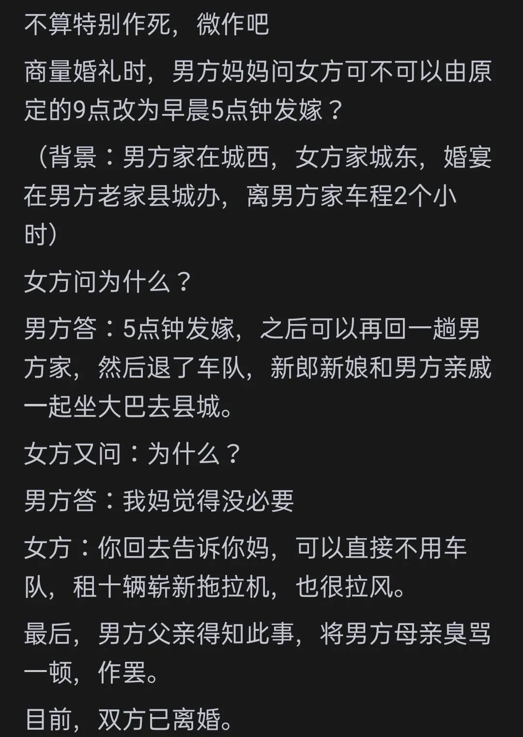 今日话题:你见过哪些结婚作死的行为?婚姻本应是两个人携手共进的温馨旅程,但有些行为却让人不禁感叹“作死”。接下来,我们就一起看看网友们分享的那些让人瞠目结舌的结婚奇葩案例。