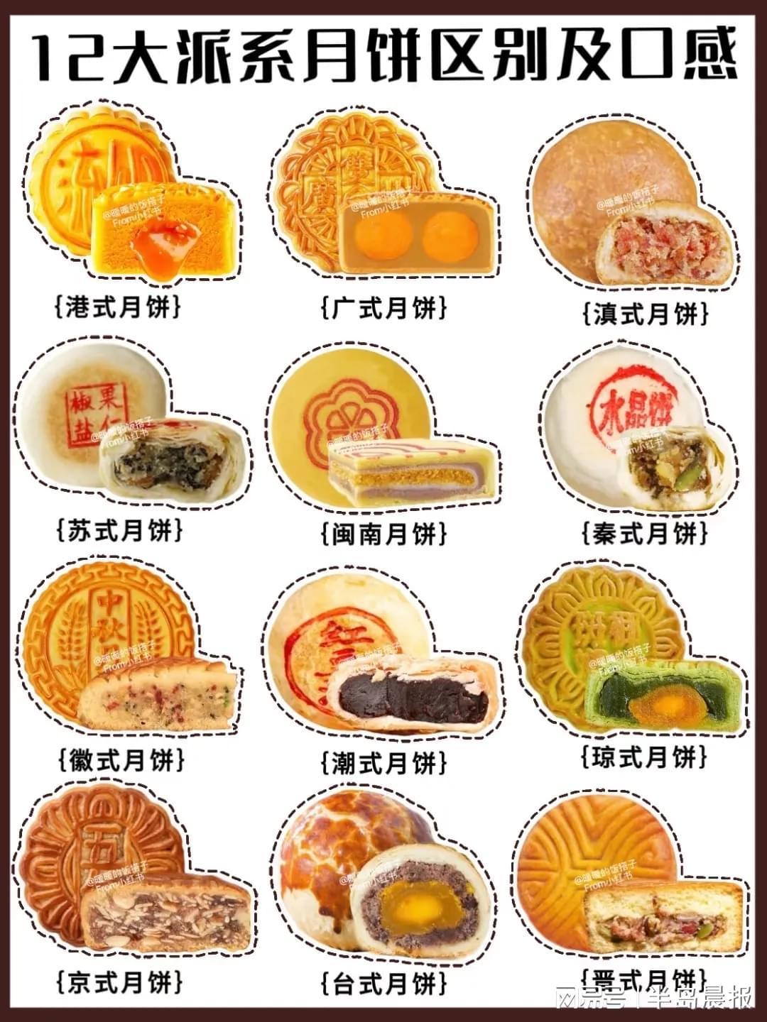 中国地大物博,各地月饼种类繁多。除了大家熟悉的五仁月饼、百果月饼、鲜肉月饼外,按地区划分还有港式月饼、广式月饼、滇式月饼、京式月饼、苏式月饼、徽式月饼、秦式月饼、闽式月饼、琼式月饼、潮式月饼、台式月饼、晋式月饼等多种类型。每种月饼都与当地的饮食习惯紧密相连,形成了各具特色的月饼文化。