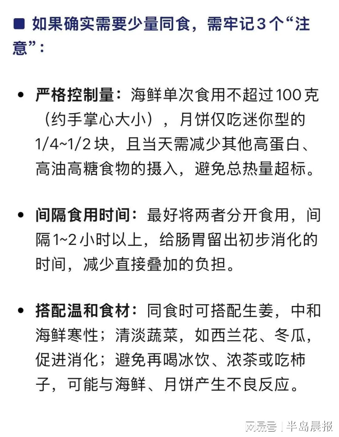 此外,中秋前后也是应季海鲜产品大量上市的时候。专家明确建议,月饼和海鲜不建议大量同食。若需少量搭配也需掌握科学方法,避免给身体带来负担。海鲜尤其是虾、蟹、贝类富含蛋白质,与月饼大量同食可能影响营养吸收效率,会显著加重胃肠消化压力,容易引发腹胀、嗳气、腹泻等不适。尤其对消化功能较弱的老人、儿童或胃肠疾病患者更不友好。