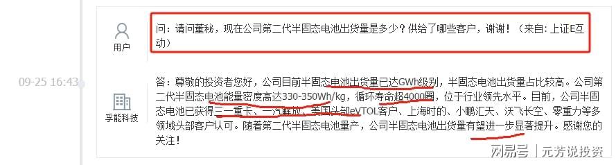 固态电池最新进展:9月23日互动平台上表示,公司半固态电池已经有小批量出货,固态电池研发顺利。