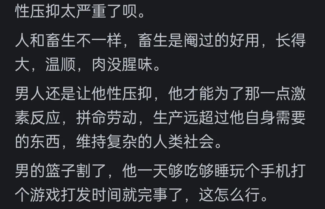 也有网友直言不讳地指出,‘说白了还是大脑战胜不了生理冲动,繁衍后代的生物本能高于其他情感需求。那些说“感情的交换”的,怎么不养个手机宠物交换感情呢?’这种略带调侃的观点,反映了部分人对性行为背后生物本能的深刻认识,也揭示了情感与生理需求之间的复杂关系。