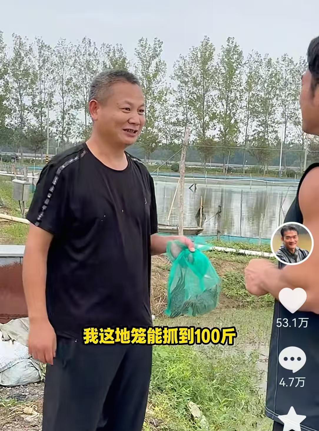 他们收第一个地笼时,收入颇丰,第一个地笼竟然有110多斤。