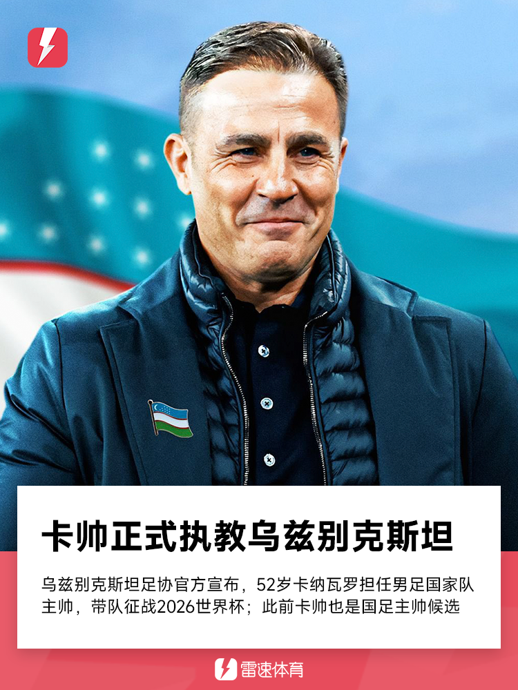北京时间10月6日,乌兹别克斯坦足协通过官方渠道发布重磅消息:前意大利国家队队长、世界杯冠军成员法比奥·卡纳瓦罗正式出任乌兹别克斯坦国家队主教练,将率队征战2026年美加墨世界杯亚洲区预选赛。