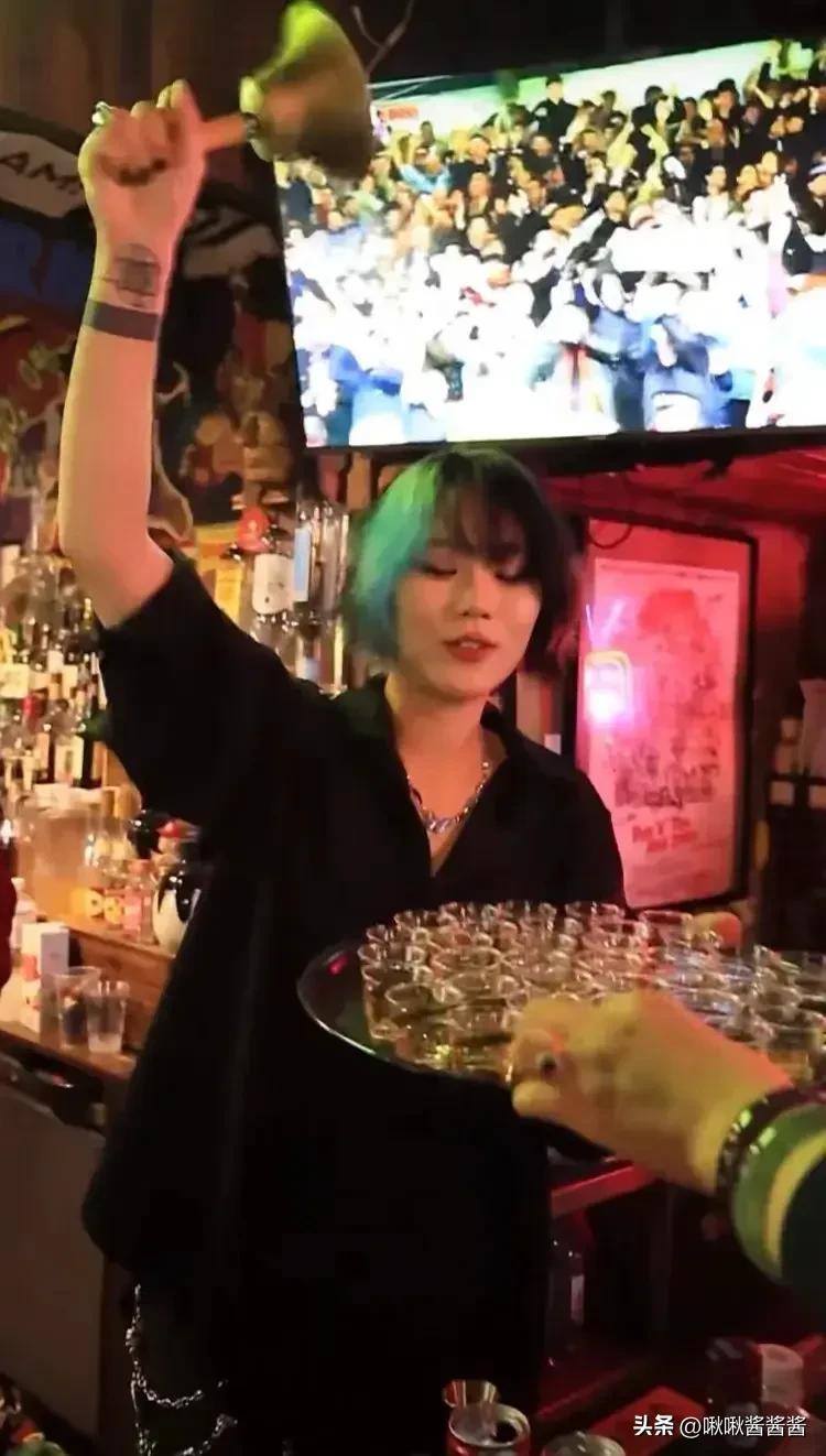 窦佳嫄的形象气质与夜店的氛围相得益彰,她不仅调酒技术娴熟,更擅长搞气氛,让整个酒吧都沉浸在欢乐之中。