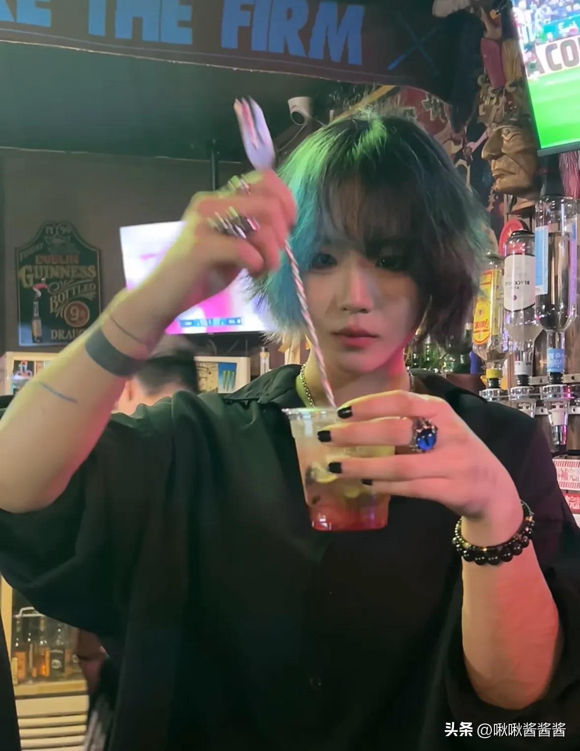 照片中的窦佳嫄打扮十分前卫,苍白的脸庞、荧光蓝的头发、黑色美甲,以及手臂上的大面积纹身,无一不彰显着她独特的个性。此次,她参与的是酒吧特别策划的“摇滚明星酒保”活动,作为摇滚歌手的她,化身酒保,熟练地调制着各种鸡尾酒。