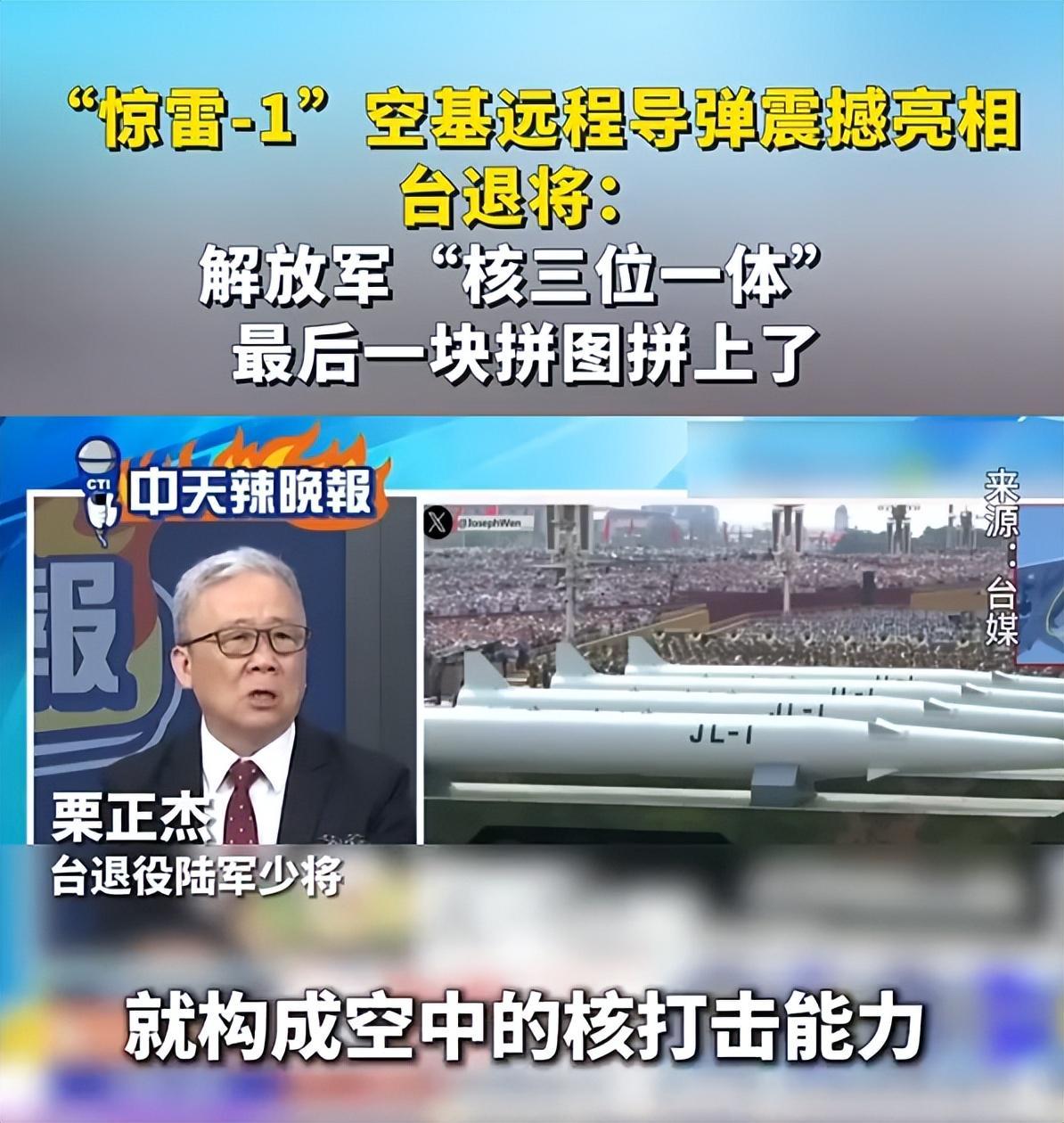 “惊雷-1”空基远程导弹震撼亮相,台退将:解放军“核三位一体”最后一块拼图拼上了