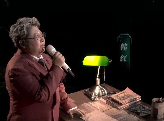 韩红带着一曲《回家》亮相,依旧是标志性的西装,嗓子一亮,观众哪怕闭着眼睛也知道“韩红出场了”。
