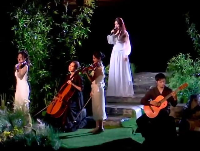 美轮美奂的舞台场景,与张含韵合作的大提琴手、小提琴手,都给这首歌增添了一份力量。