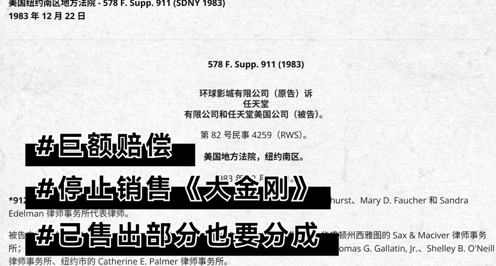原来早在 1975 年,环球影业就曾为金刚的版权问题与雷电华电影公司打过官司,不过上次的官司中环球是被告,被指控未授权使用金刚 IP。好嘛,环球在这又唱又跳搞了半天,原来它也没有金刚的版权。