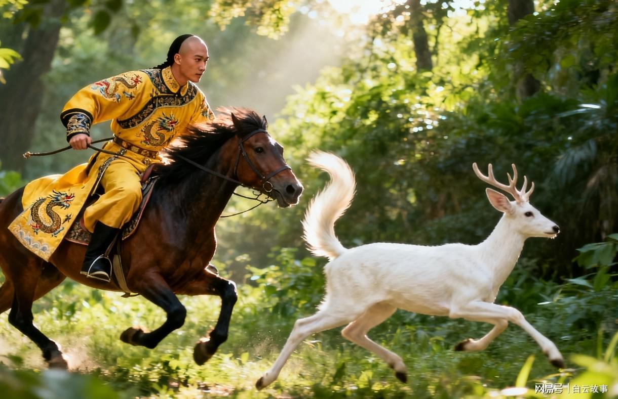 白鹿跑得极快,在林子里左躲右闪,康熙紧追不舍。树枝不断从身边掠过,有几次差点打在脸上。追着追着,林子越来越密,路越来越难走,马匹开始喘粗气,速度慢了下来。