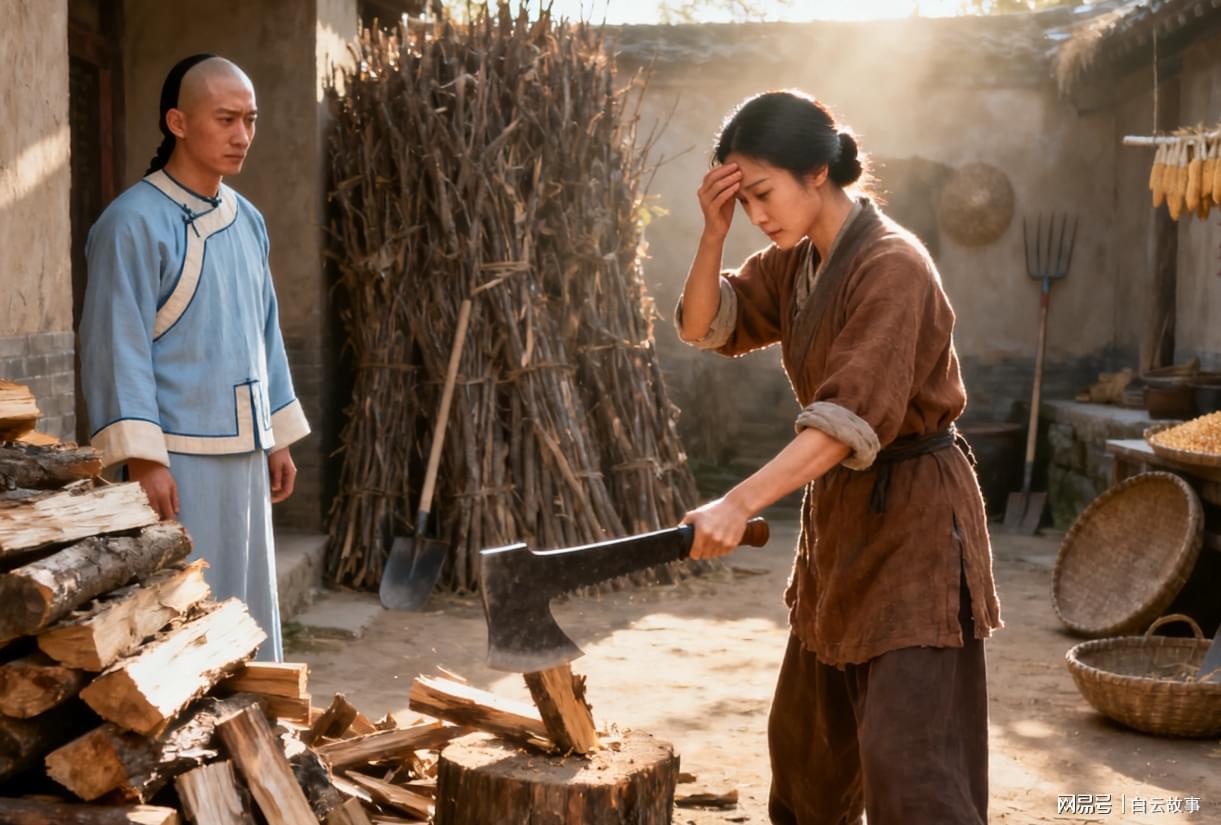 第二天一早,康熙就起来了。他走到院子里,看见钟素锦正在劈柴。那柴刀很沉,她一个女人家使起来很吃力,劈几下就要歇一会儿。