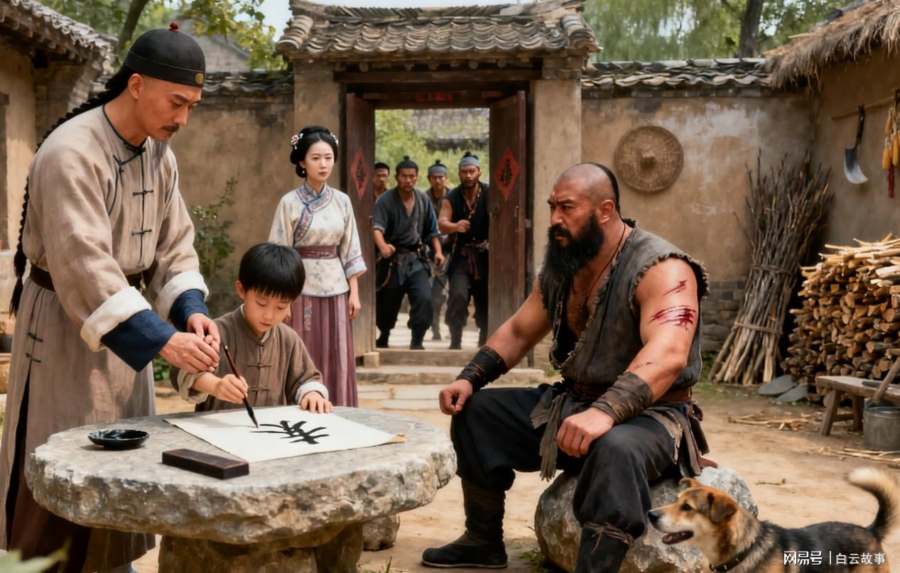 第三天早上,康熙正在院子里教小山练字,突然听见狗叫得特别凶。接着,院门被踹开了,几个凶神恶煞的人闯了进来。