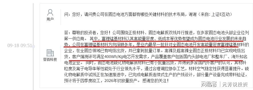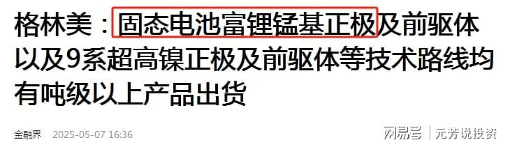富锂锰基进展:获富锂锰基正极材料发明专利(CN202510025616.2),通过氟离子、镁离子掺杂提升材料性能,适配硫化物固态电池体系,已进入宁德时代、比亚迪供应链。