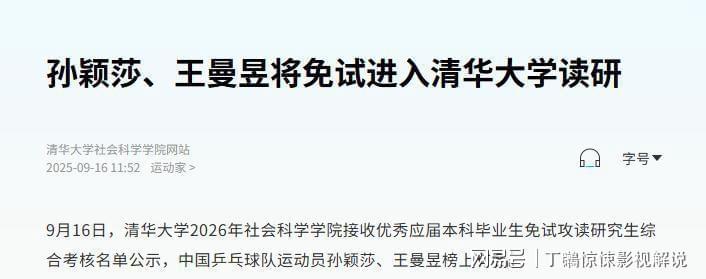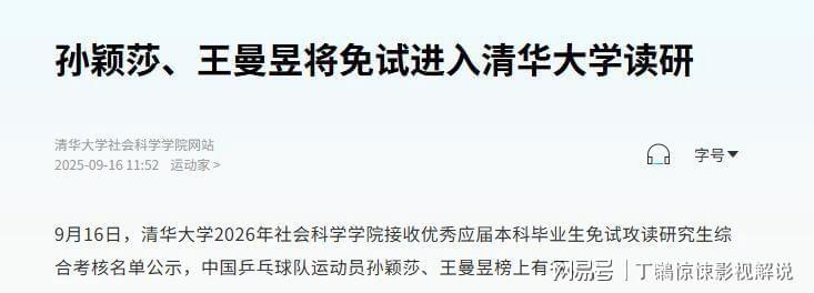 9月份清华大学公布研究生免试名单,王曼昱的名字赫然在列。
