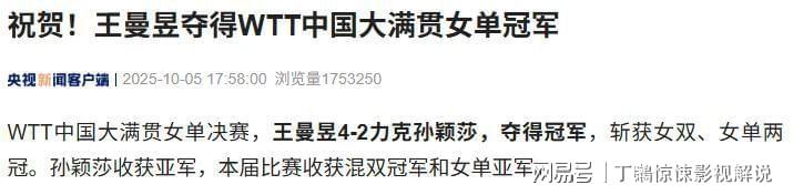 说到底,王曼昱的胜利,不只是一个双冠王的诞生,更是对体育精神的捍卫。