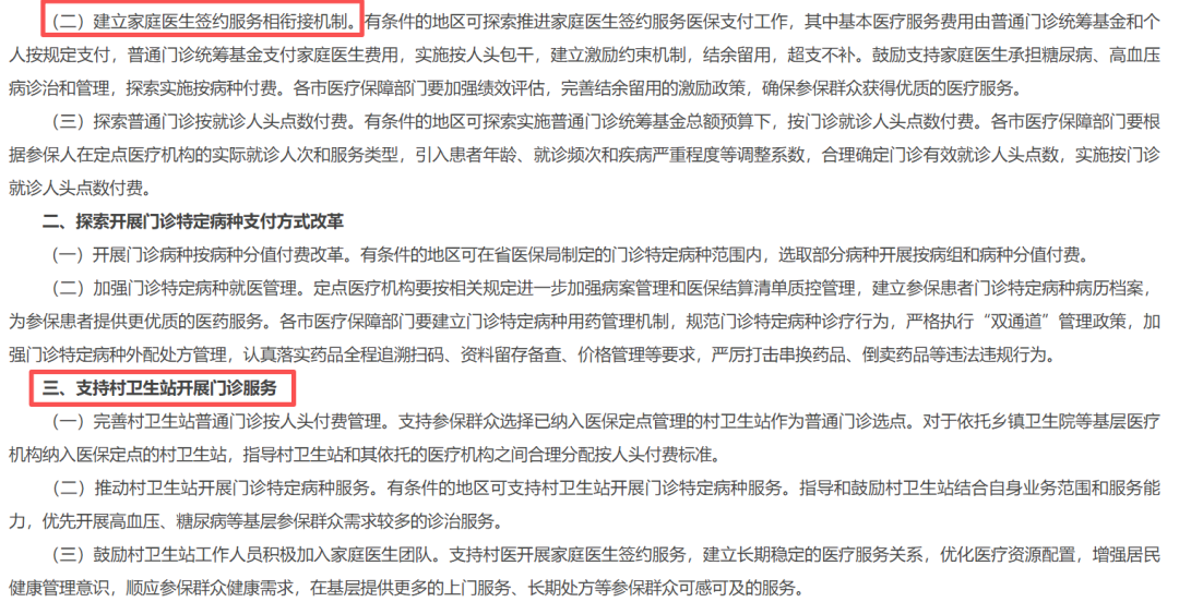 根据广东同步的新规,会大力推行“基层首诊、分级诊疗”,支持村卫生站开展门诊服务,以及建立家庭医生签约服务。