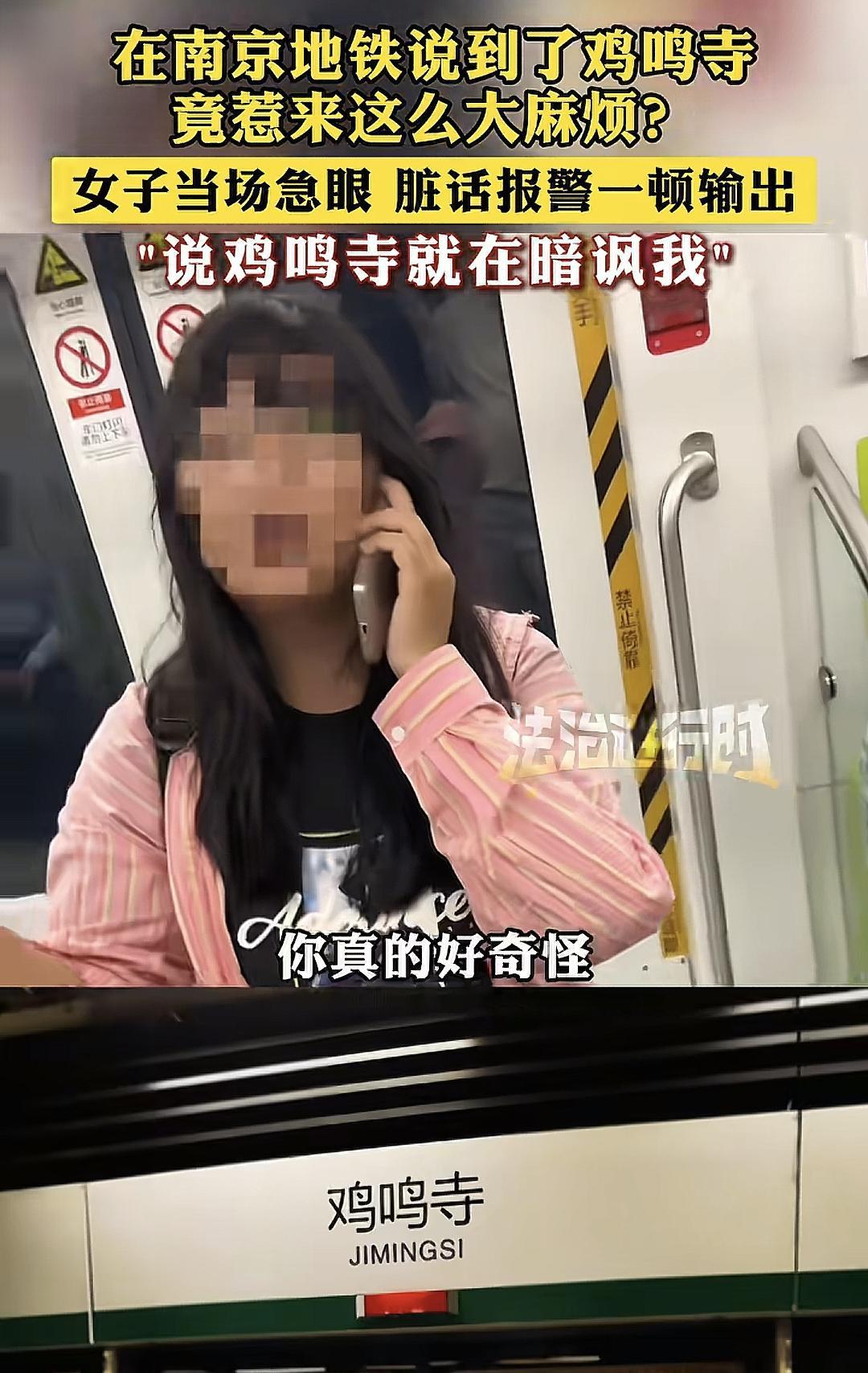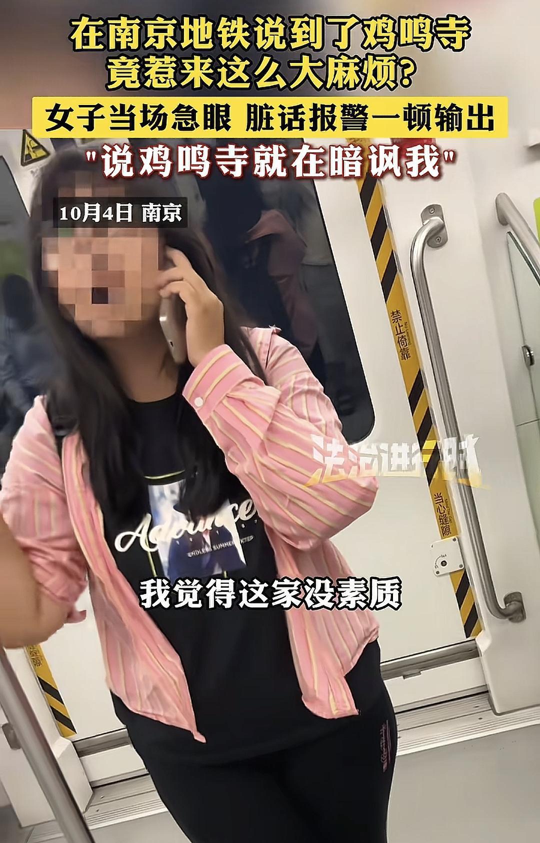 10月4日,在南京地铁3号线上,一名粉衣女子突然打电话声称要报警,这一举动让周围乘客感到莫名其妙。经过了解,原来是因为一名小男孩提到了‘鸡鸣寺’这个地铁站点,而粉衣女子却认为这是在暗讽她。