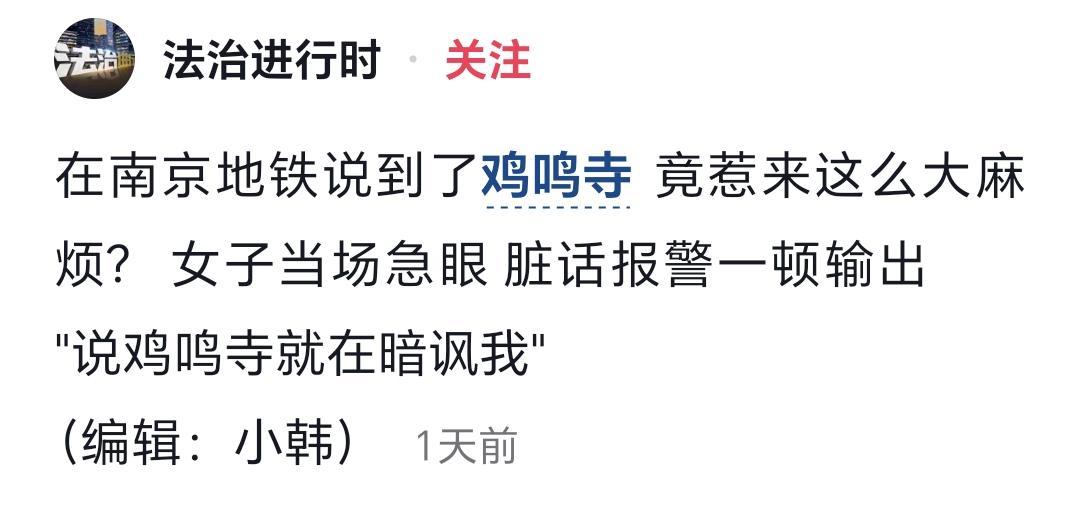 自从网络发达以后,各种新鲜事儿层出不穷,甚至有人因为地名而引发冲突。近日,南京地铁3号线上就发生了一起因误解‘鸡鸣寺’站点名称而引发的风波。