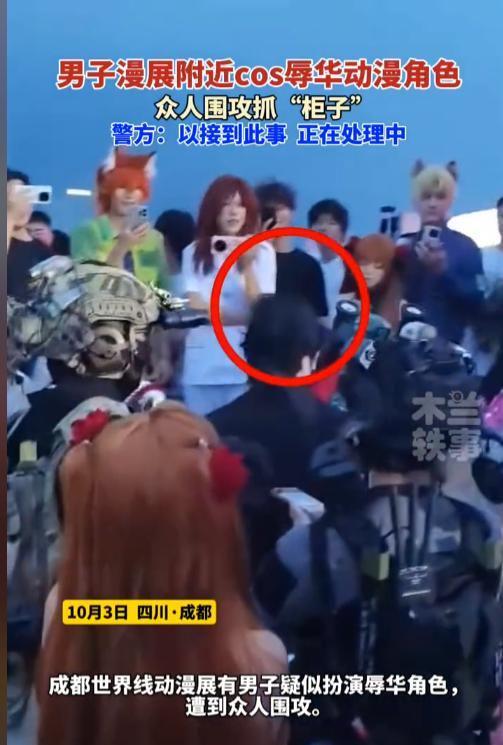 可这男的全程低着头,一声不吭,就是不摘,这时候他女朋友跳出来了,指着围观的人就开喷:这是我们私设的原创角色,你们懂个屁!