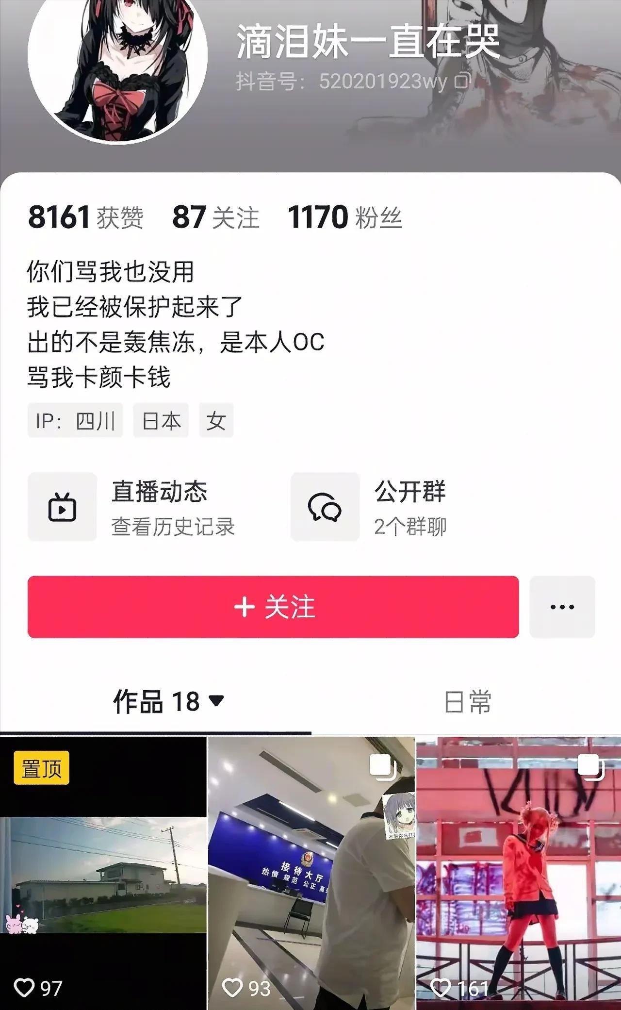 事发当晚,这姑娘就把自己的社交账号标签改成了“你们骂我也没用,我已被保护”,她还晒出了派出所的照片,继续狡辩说那是“原创角色”。