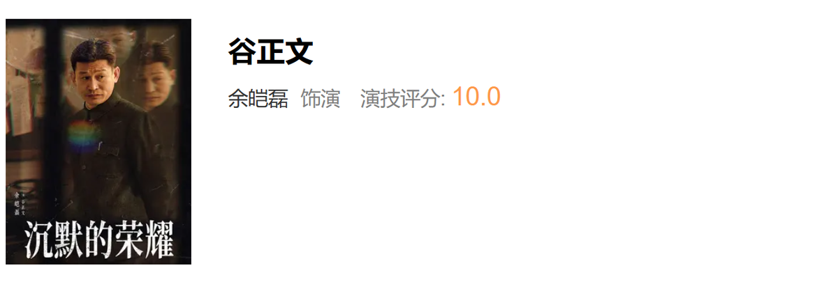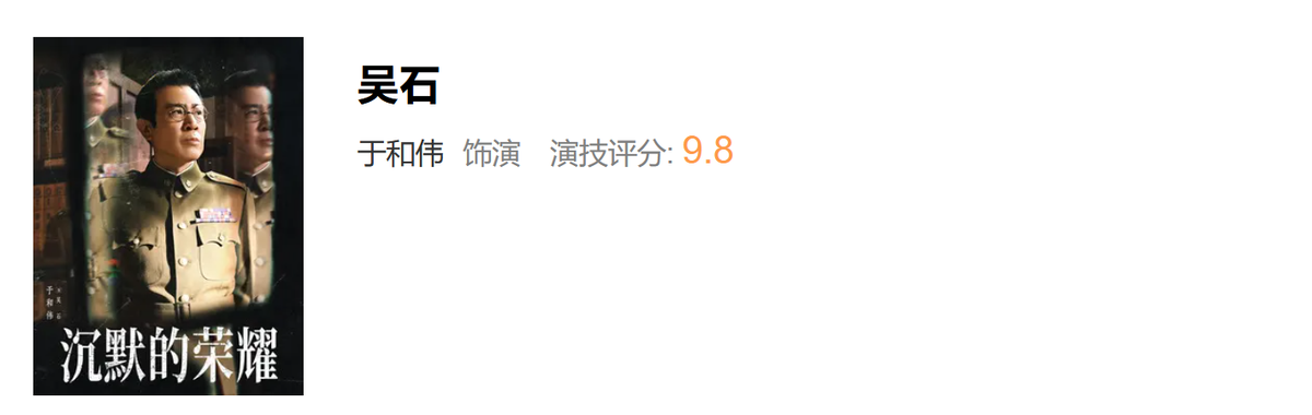 于和伟演出了吴石将军的沉稳与沉重,让这一英雄人物丰满了站在了观众面前,但如此精彩绝伦的演技评分却仅有9.8分没干过第一,还真是令人有些意难平啊。