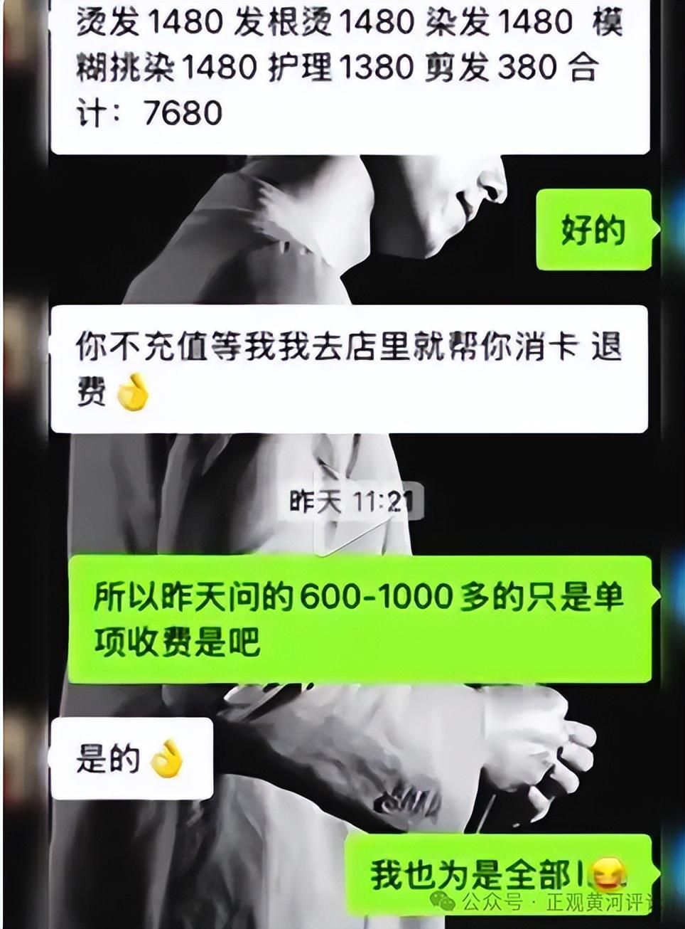 2025年3月,云南昆明某个美发店就出现了“欺客”事件,有顾客到了店里选了个1480元的项目,结账时却变成了7680元。