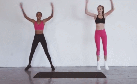 坚持3-4周后,你会发现开合跳可以坚持更久时间了,这个时候可以从每组2-3分钟开始,组间休息1-2分钟,累计开合跳15分钟,可以起到更好的燃脂效果。