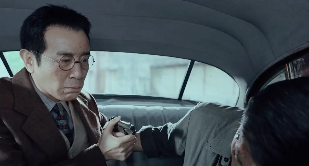 吴石拿枪在他耳边示警那场戏,他膝盖本能地一软,但随即站直,眼神里没有恐惧,反而是更深的执念。