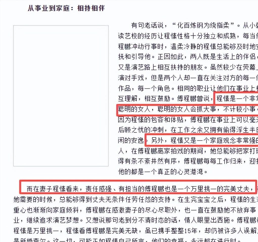 2011年一档节目里,傅程鹏程愫分享他们二人的感情生活,字里行间都是对彼此的新人,傅程鹏也成为了大家心目中的“好丈夫”。