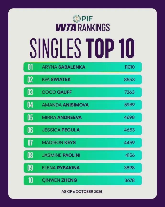 10月7日,@WTA国际女子网球协会 公布了本周TOP20球员的最新排名与积分情况,中国网球选手郑钦文的排名出现下滑,目前位列世界第10位。