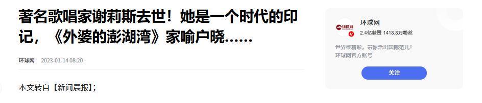 虽然谢莉斯走了,但那些温柔的旋律还在,现在打开播放器再听《外婆的澎湖湾》,还是能想起当年那个把快乐唱进歌里的姑娘,只是想起她这辈子的苦,真的忍不住叹口气。