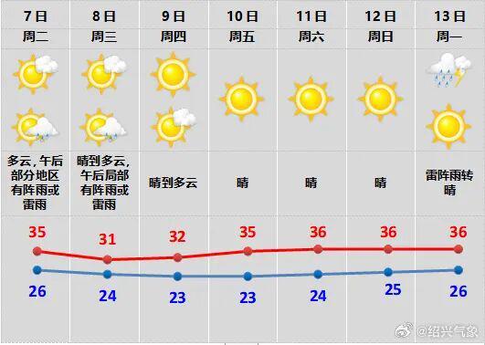 据绍兴气象部门预测,今日绍兴多云,午后部分地区有阵雨或雷雨。未来七天,绍兴将持续受副高控制,以晴到多云天气为主。受弱冷空气影响,气温将先降后升。气象部门提醒市民,需关注天气变化,合理安排出行计划,同时做好防暑降温和防雷防雨措施。