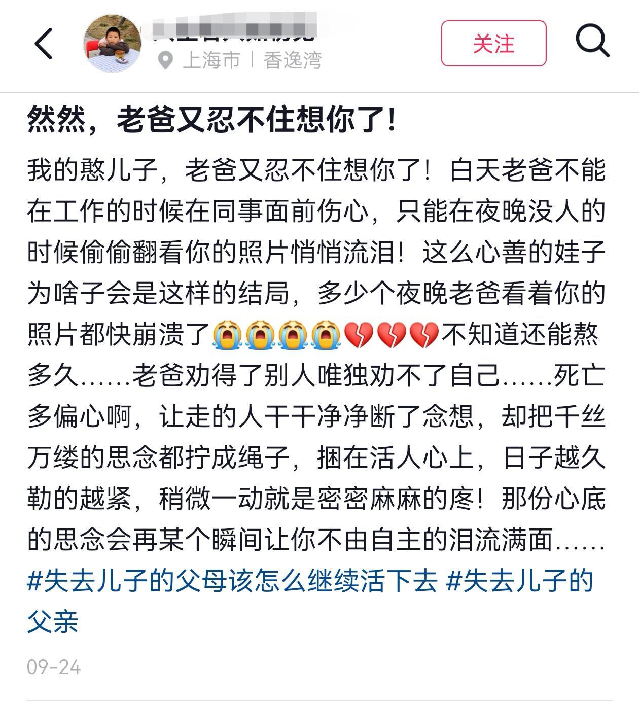 10月6日,四川的张先生在社交账号上发文,悲痛地悼念不久前去世的儿子。往年的中秋节,一家人总是团团圆圆,而今年,儿子的缺席让这个节日变得格外凄凉。