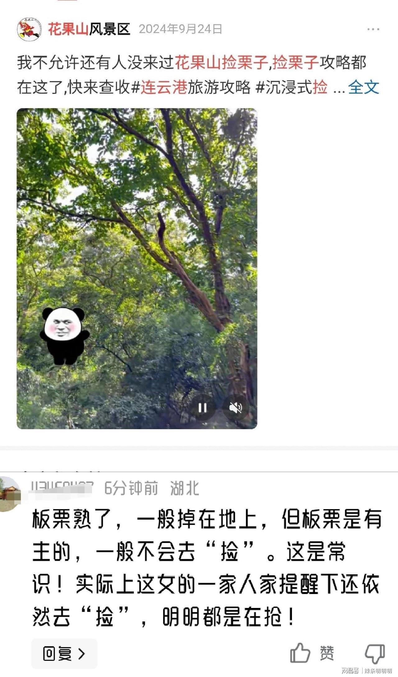 网友们之所以对民宿老板的行为感到愤慨,原因主要有以下几点。首先,景区工作人员已经明确表示,游客并没有偷盗行为,民宿老板的行为纯属个人行为,与景区无关。其次,景区内的监控录像也显示,游客确实只是捡拾了掉落在地上的板栗,并没有摘取树上的板栗。最后,花果山景区早在去年就发布过相关信息,邀请游客前来捡拾板栗,这进一步证明了游客的行为并无不当之处。