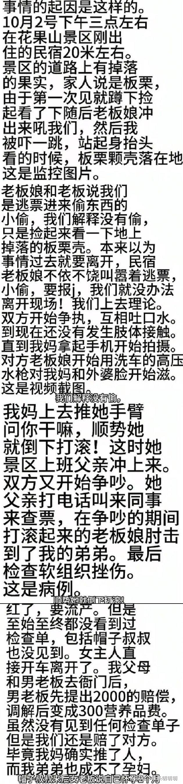 事件的起因并不复杂。游客在花果山景区内捡拾掉落的板栗,却遭到了一家民宿老板的指责,声称游客偷窃了他们种植的板栗。双方因此产生了激烈的冲突,甚至一度闹得不可开交。尽管最终双方达成了和解,赔偿金额也从最初的2000元降低到了300元,但这场风波在网络上引发的后果才刚刚开始显现。