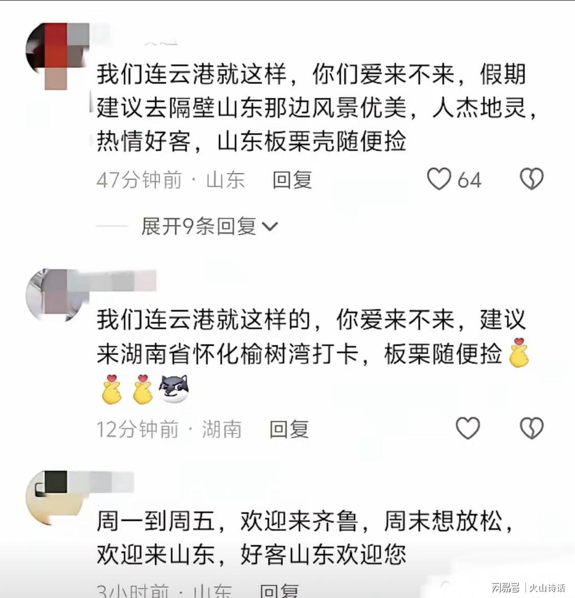 “我们连云港就是这样,你爱来不来。建议你们去×××打卡游玩,那里的板栗随便捡。”这样的评论,虽然带有调侃意味,但也折射出连云港文旅在此次事件中的尴尬处境。更有网友指出,这些评论的IP地址都是外地的,显然是在看热闹不嫌事大。