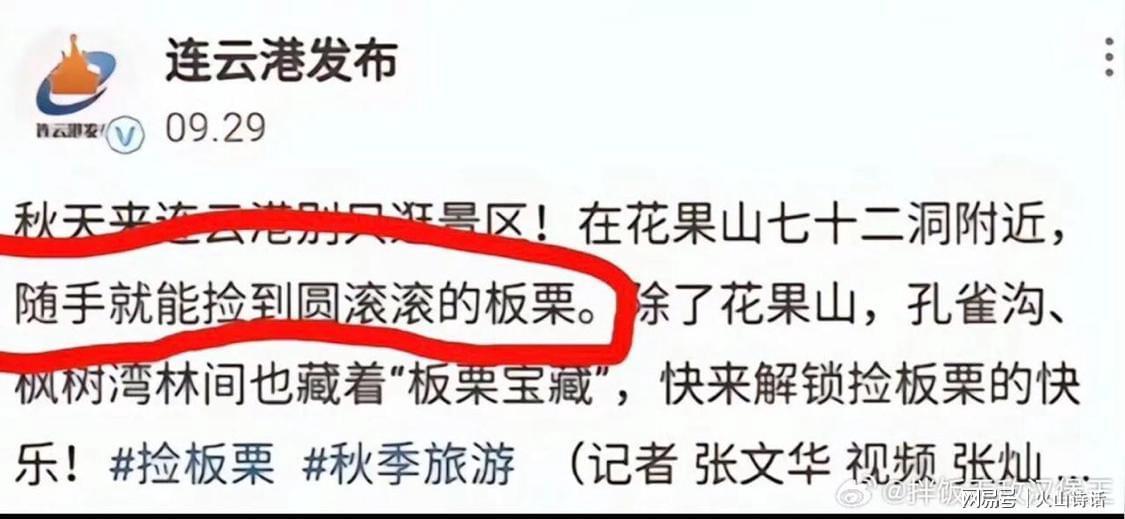 值得一提的是,此前当地官方发布的消息称,秋天来连云港别只逛景区,在花果山七十二洞附近,随手能捡到圆滚滚的板栗。除了花果山,孔雀沟、枫树湾林间也藏着“板栗宝藏”。这一宣传广告似乎已经告诉游客,这些板栗是随处可见、随处可捡的。