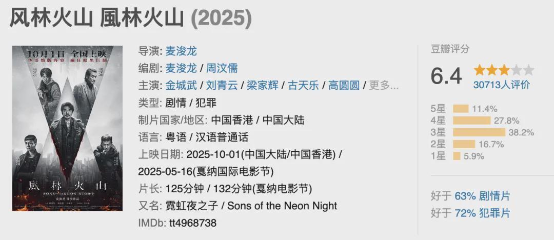 在国庆档的影片中,也有一些作品未能获得观众的青睐,例如《风林火山》。这部影片此前曾引发高度期待,但最终呈现的效果却令人失望。尽管在美术和特效上投入了大量资金,但影片本身缺乏鲜明的特色,给人一种模仿他人作品的感觉。无论是视听效果还是剧情发展,都难以支撑如此高的投资和期待。