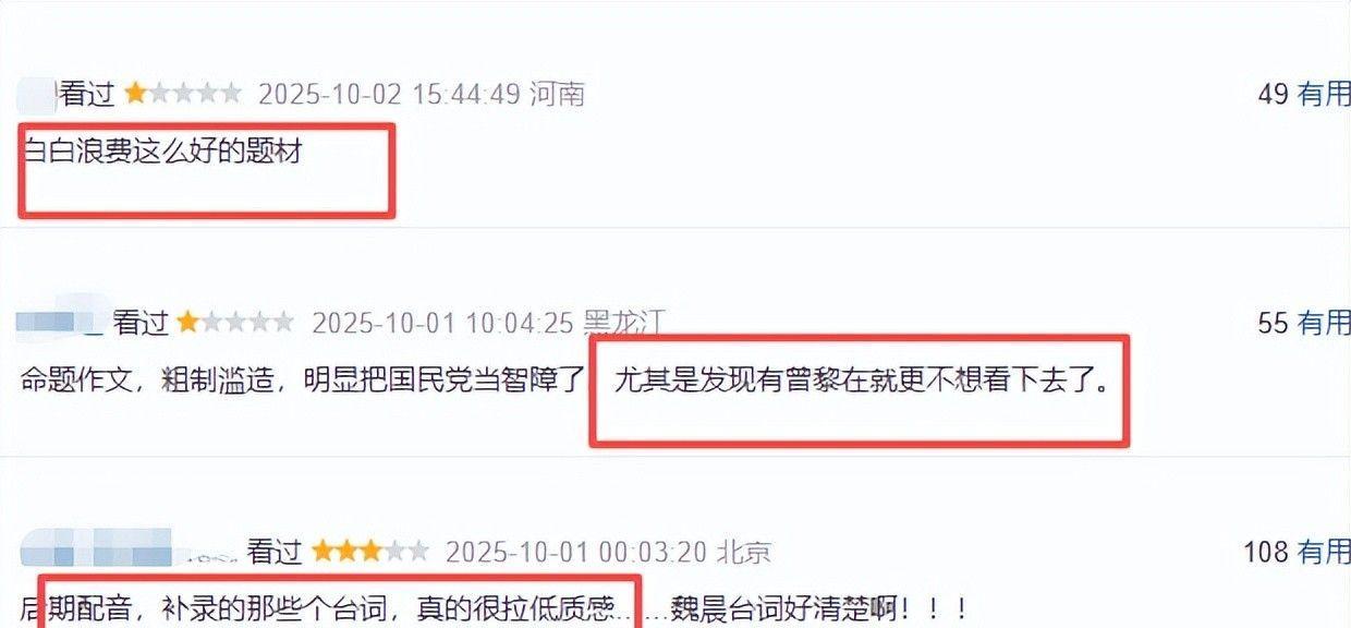 “这么好的剧本被糟蹋了”、“后期配音完全脱节,听着难受。”
