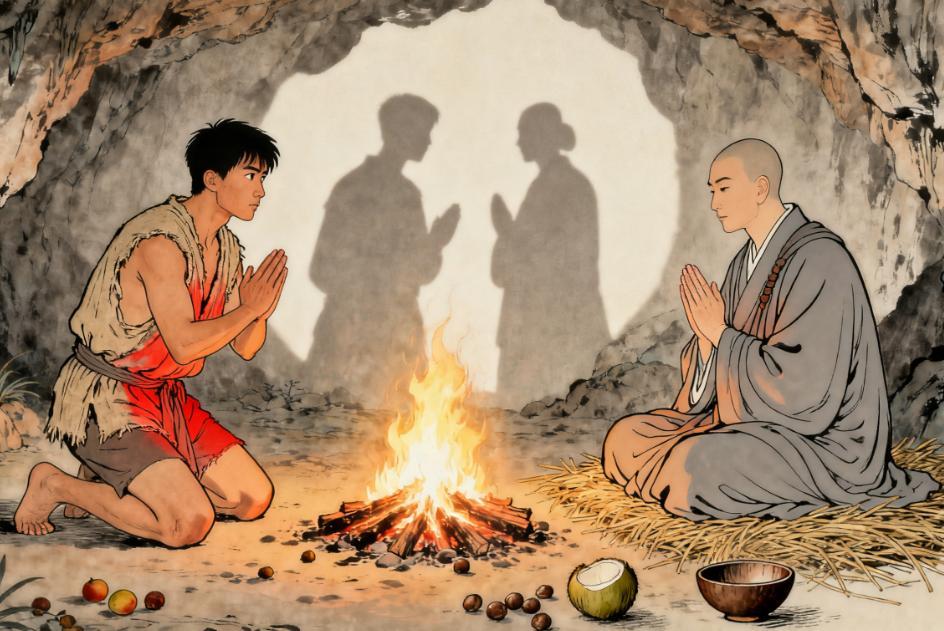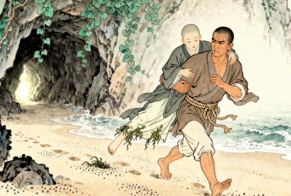 火光照亮了整个山洞,也带来了一丝温暖。阿海坐在火堆旁,看着昏迷的尼姑,心里不禁有些疑惑:这尼姑怎么会独自在海上漂流呢?难道也是遭遇了海难?