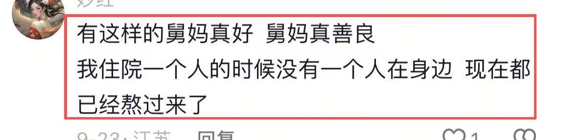相信她能好起来,有这么好的舅妈陪在身边,就什么都不怕了。