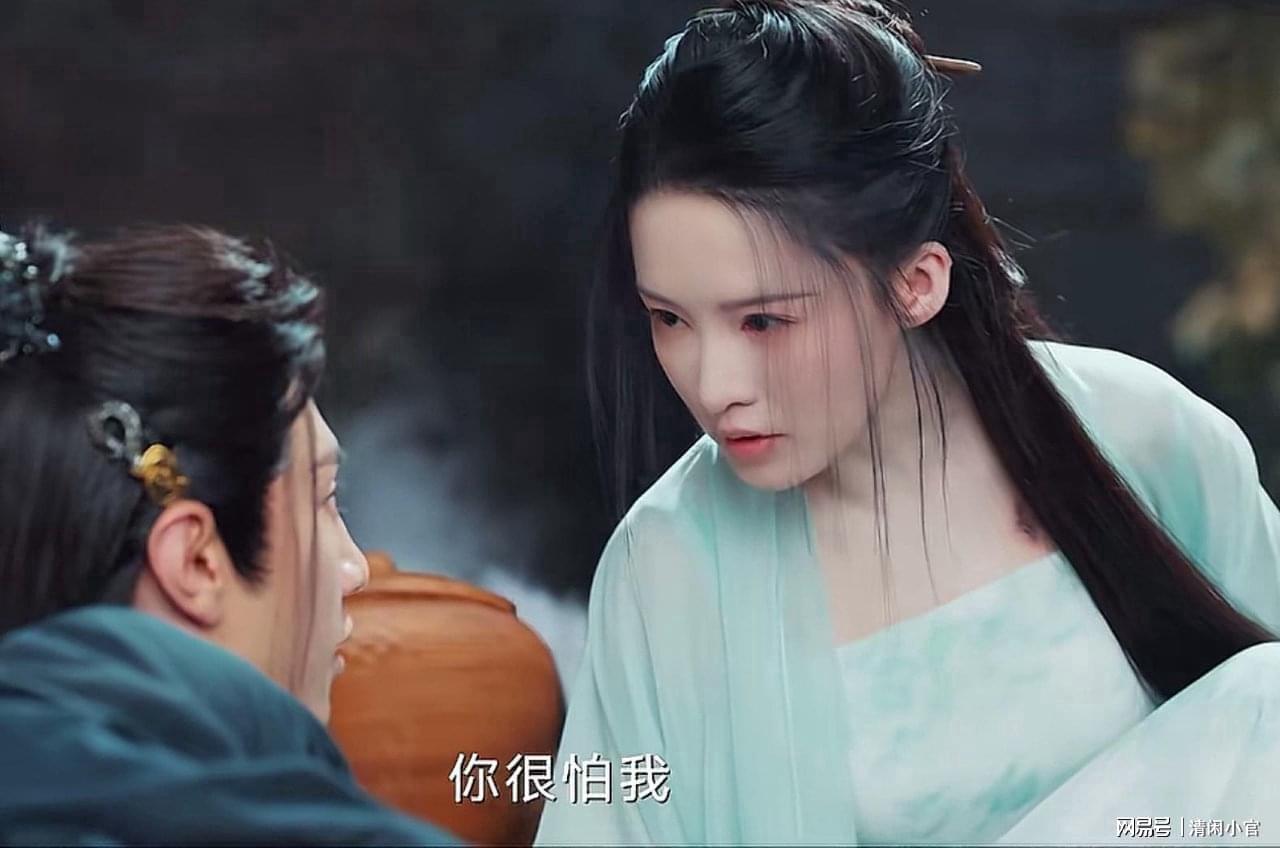 一袭红衣,脸上厚厚妆容,头上戴着繁杂的装饰,那个脸上沾血、英气十足的女主形象一下子丢失了原来的味道。到了这部分,质感也被妆容和服装拉垮了,进入没有特色的阶段。制作前后带来的效果差异,也是导致这部剧口碑分化的原因。